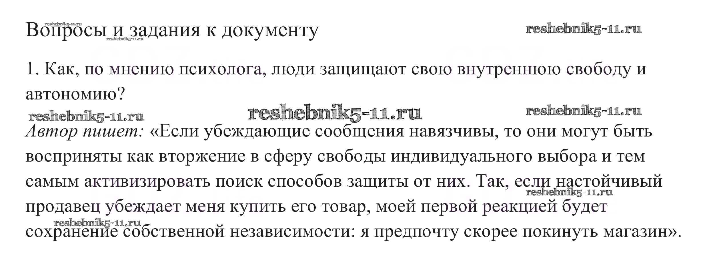 Готовая домашняя работа с ответами по Обществознанию за 10 класс Боголюбов, Аверьянов, Белявский, Иванова Учебник Базовый уровень Просвещение 2015 ФГОС - Вопросы и задания к документу 1