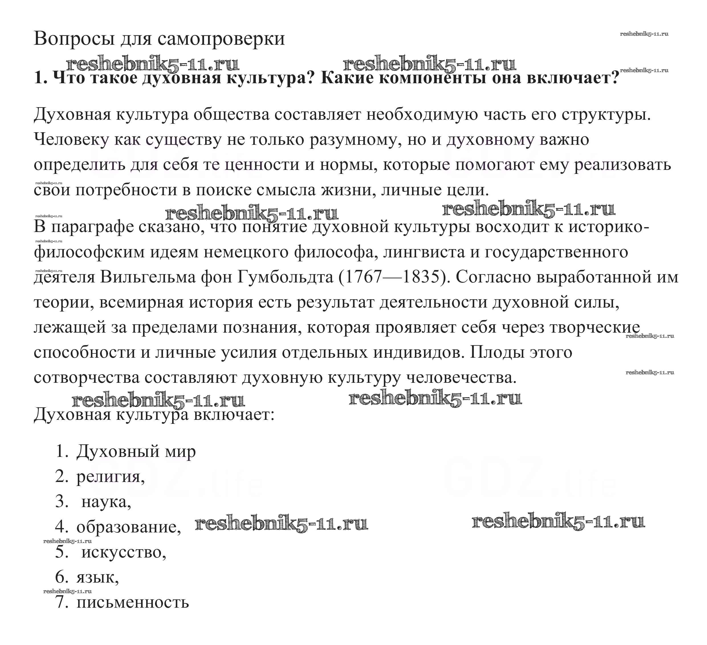 Готовая домашняя работа с ответами по Обществознанию за 10 класс Боголюбов, Аверьянов, Белявский, Иванова Учебник Базовый уровень Просвещение 2015 ФГОС - Вопросы для самопроверки 1