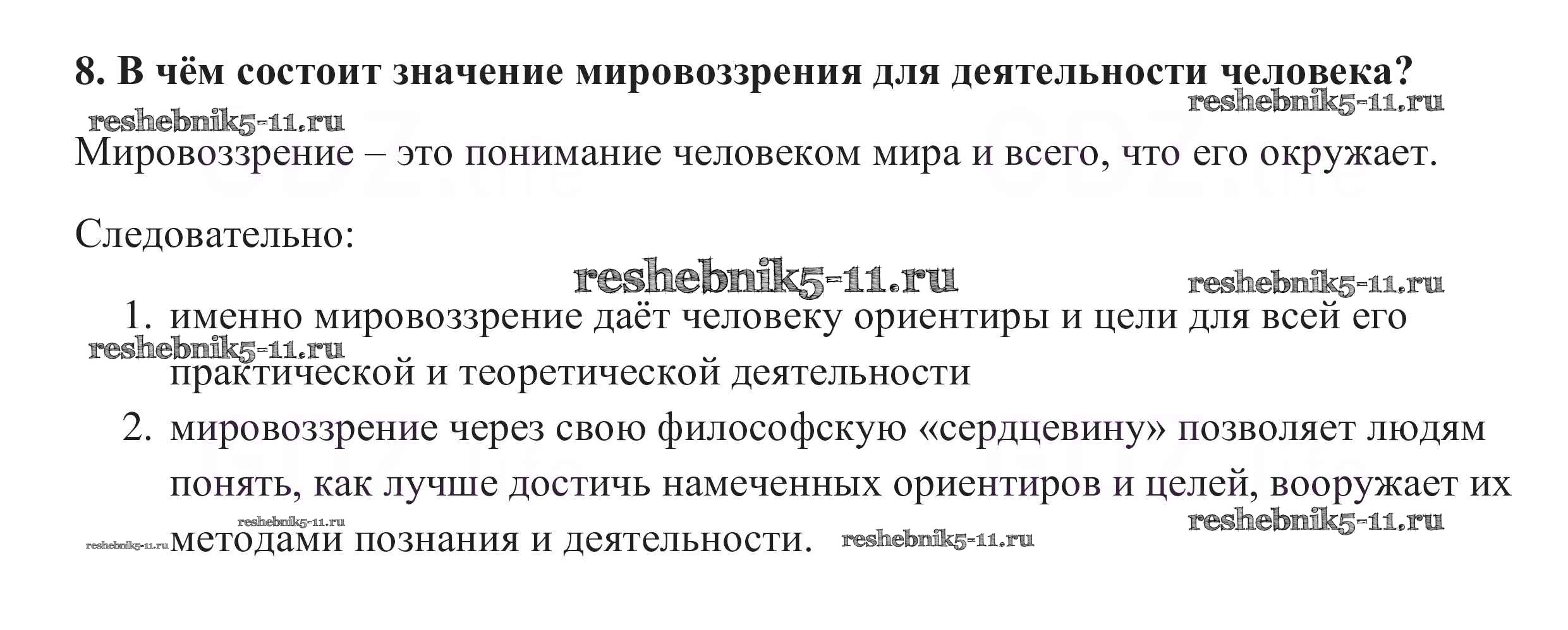 Готовая домашняя работа с ответами по Обществознанию за 10 класс Боголюбов, Аверьянов, Белявский, Иванова Учебник Базовый уровень Просвещение 2015 ФГОС - Вопросы для самопроверки 8