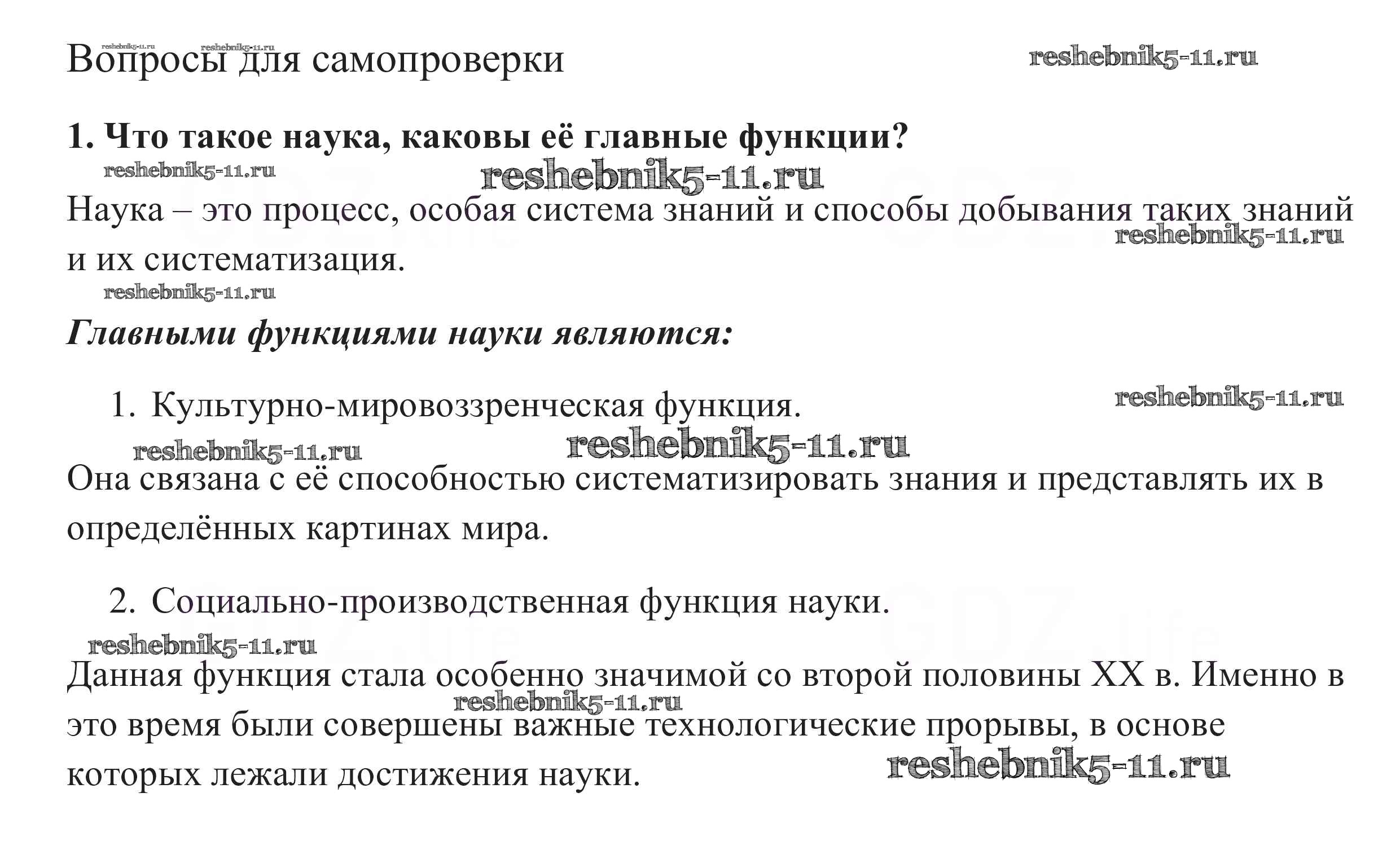 Готовая домашняя работа с ответами по Обществознанию за 10 класс Боголюбов, Аверьянов, Белявский, Иванова Учебник Базовый уровень Просвещение 2015 ФГОС - Вопросы для самопроверки 1