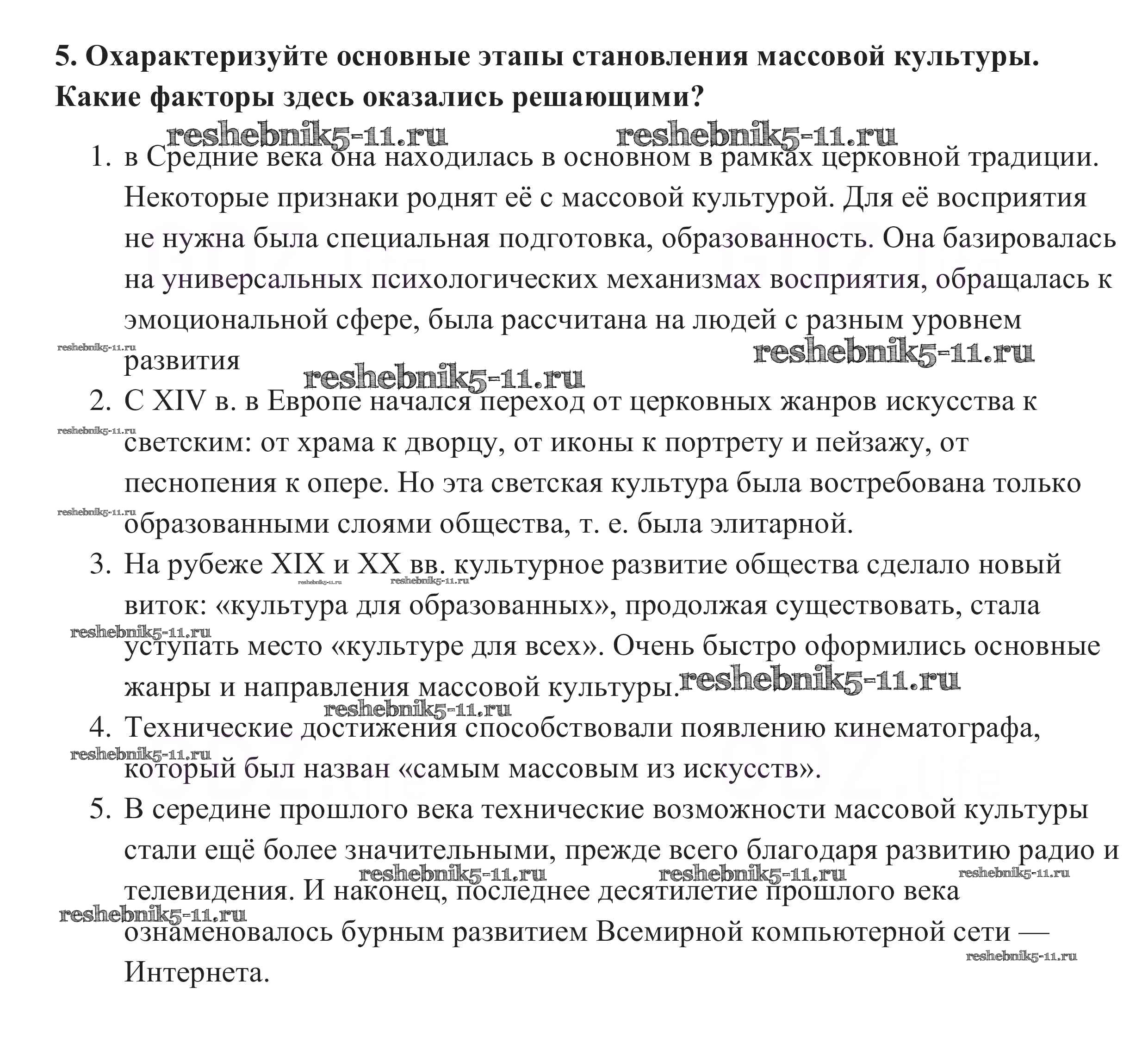Готовая домашняя работа с ответами по Обществознанию за 10 класс Боголюбов, Аверьянов, Белявский, Иванова Учебник Базовый уровень Просвещение 2015 ФГОС - Вопросы для самопроверки 5