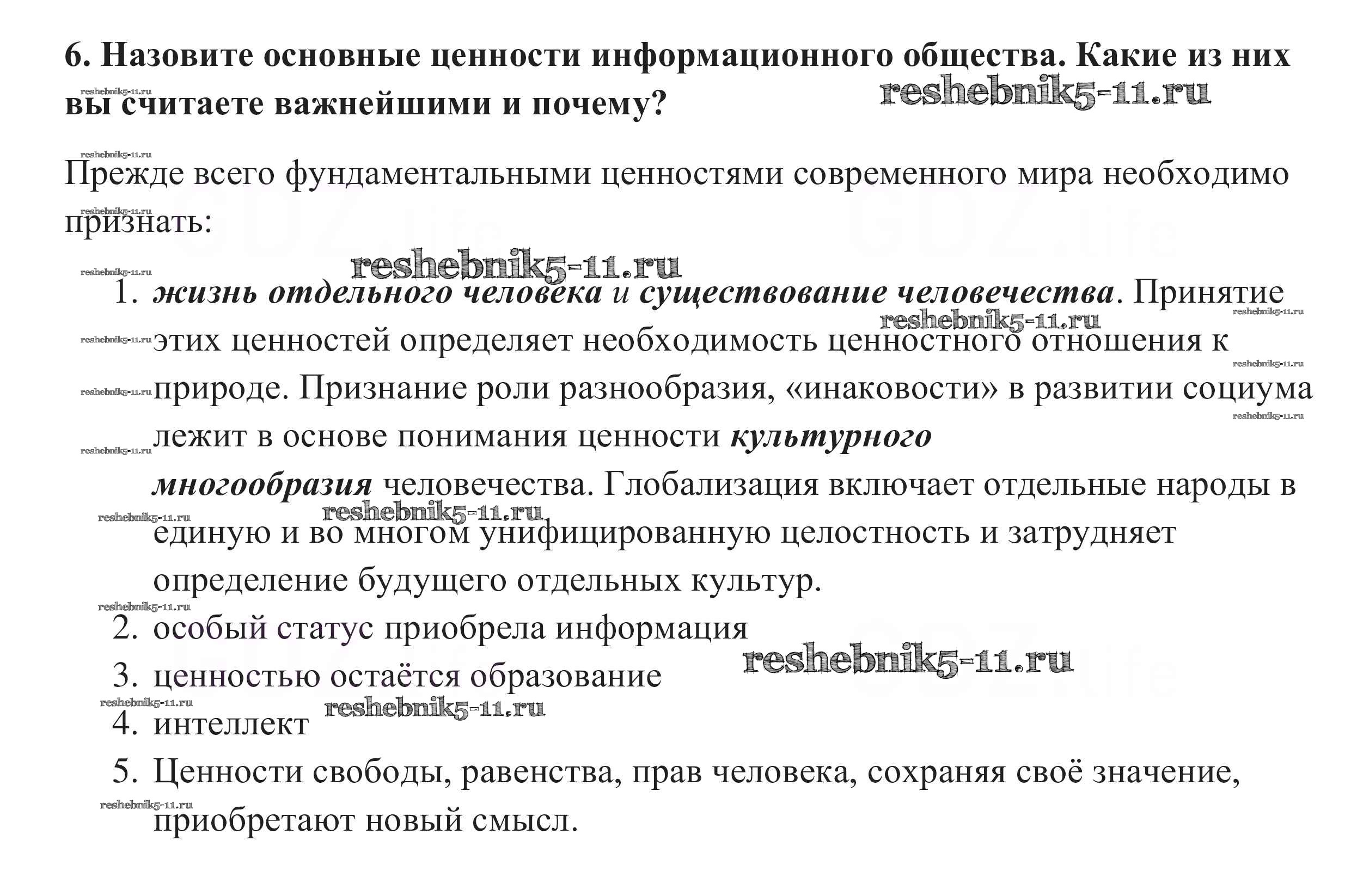 Готовая домашняя работа с ответами по Обществознанию за 10 класс Боголюбов, Аверьянов, Белявский, Иванова Учебник Базовый уровень Просвещение 2015 ФГОС - Вопросы для самопроверки 6