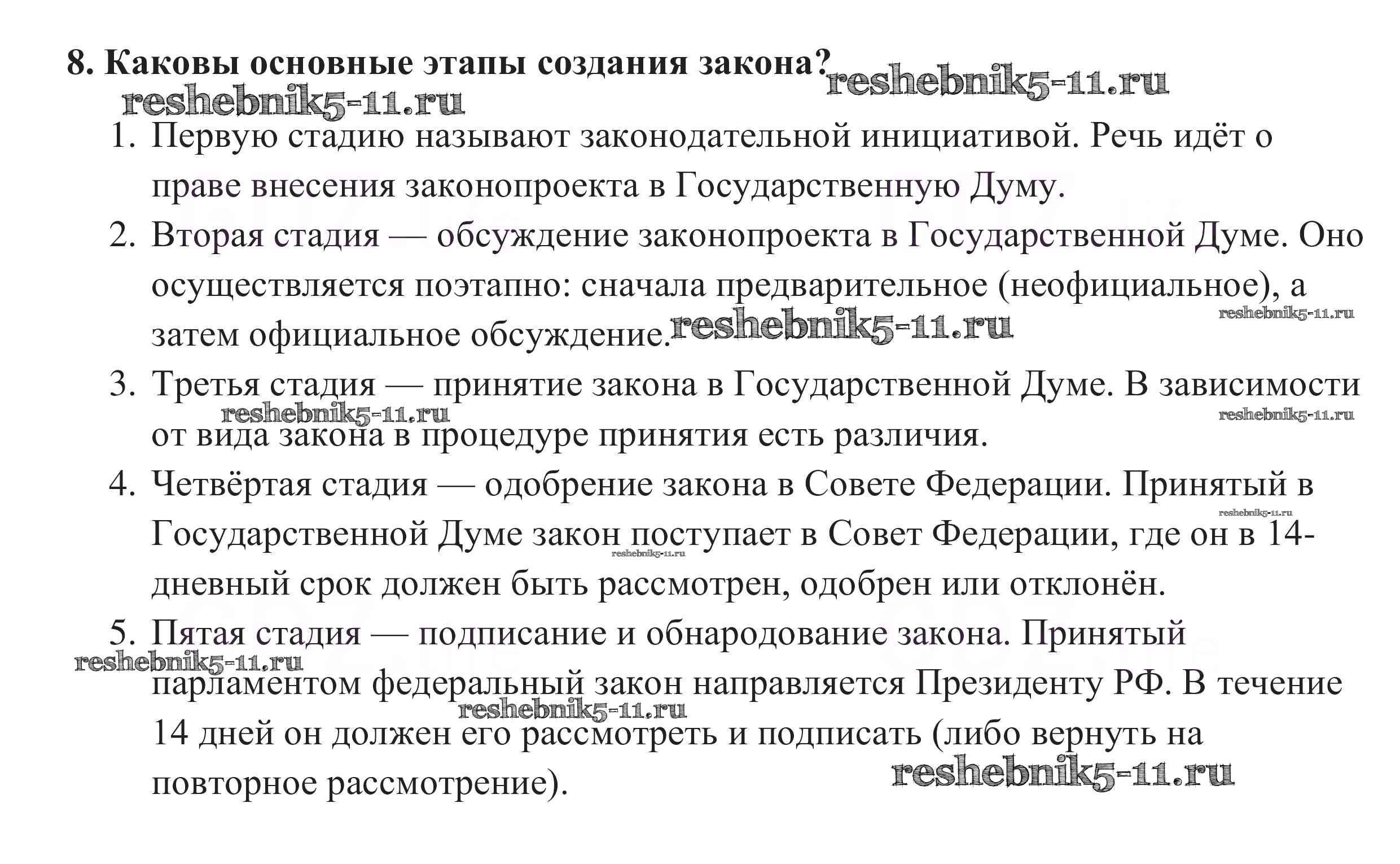 Готовая домашняя работа с ответами по Обществознанию за 10 класс Боголюбов, Аверьянов, Белявский, Иванова Учебник Базовый уровень Просвещение 2015 ФГОС - Вопросы для самопроверки 8