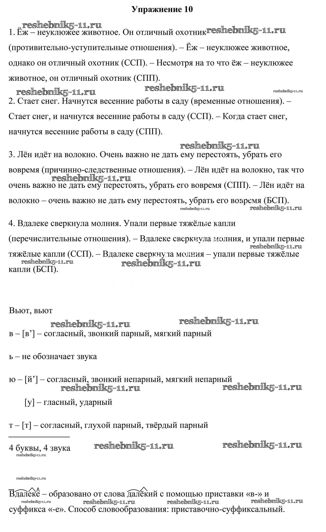 Готовая домашняя работа с ответами по Русскому языку за 10 класс Леонович, Волынец, Долбик, Санкович Учебник Национальный институт образования 2020 ФГОС - Упражнения 10
