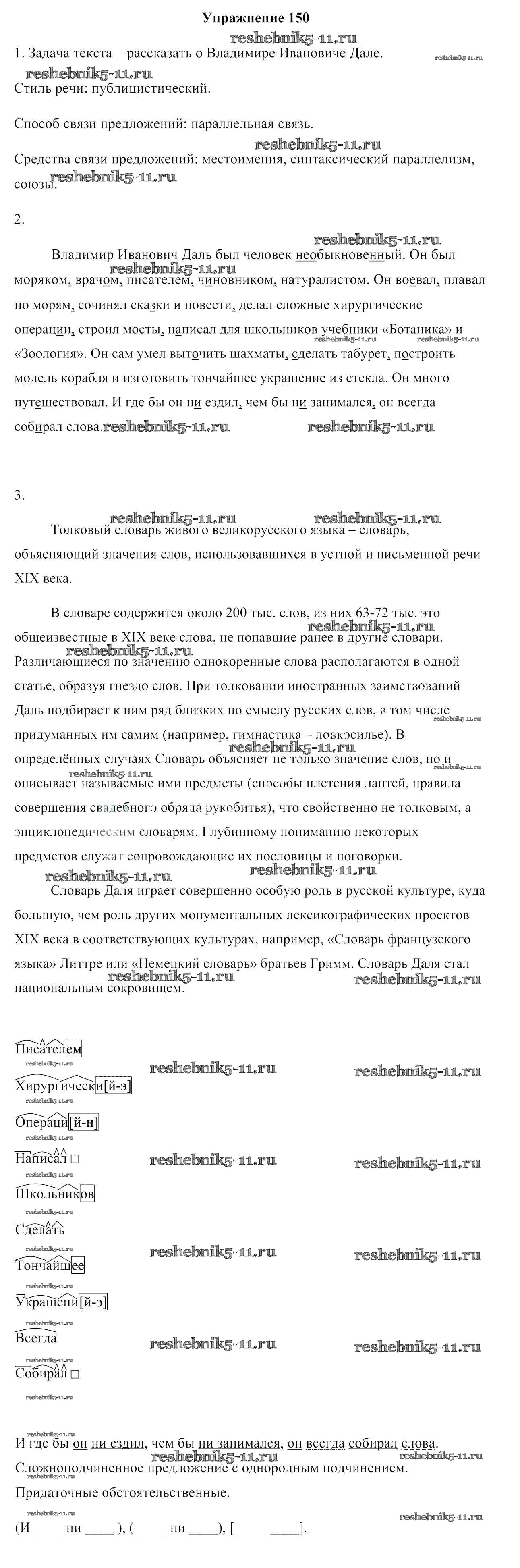 Готовая домашняя работа с ответами по Русскому языку за 10 класс Леонович, Волынец, Долбик, Санкович Учебник Национальный институт образования 2020 ФГОС - Упражнения 150
