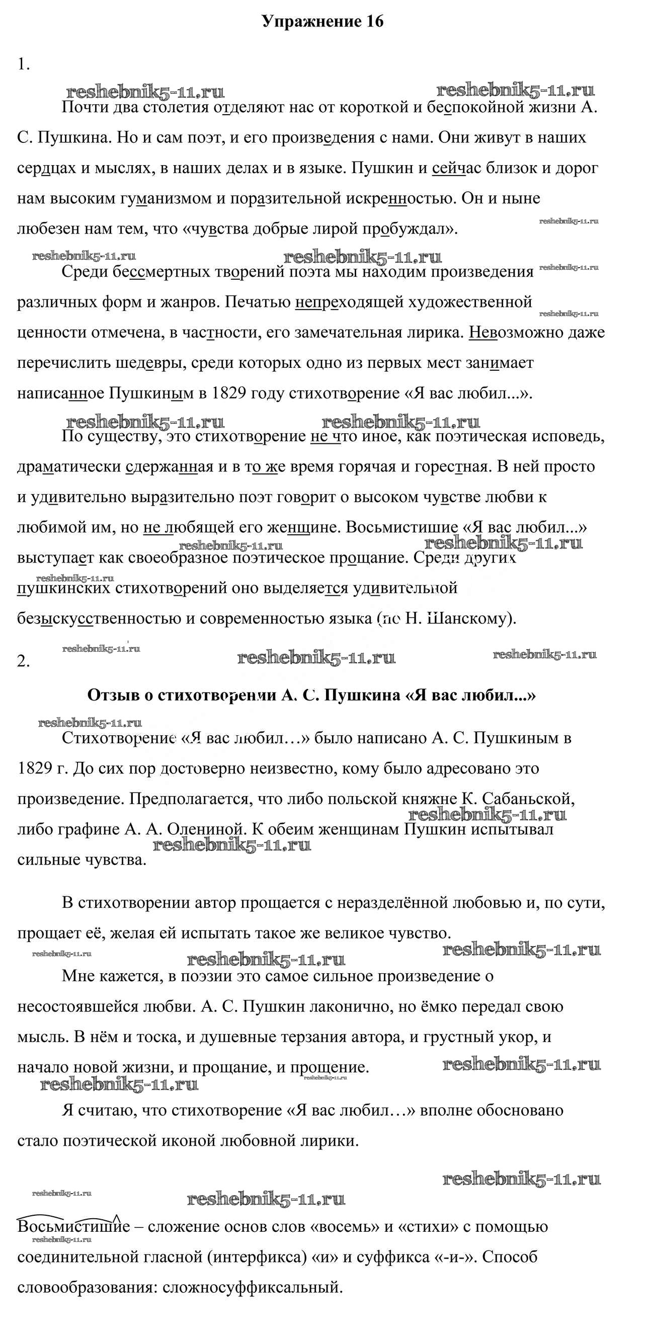 Готовая домашняя работа с ответами по Русскому языку за 10 класс Леонович, Волынец, Долбик, Санкович Учебник Национальный институт образования 2020 ФГОС - Упражнения 16