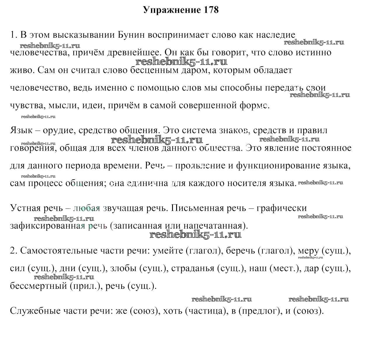 Готовая домашняя работа с ответами по Русскому языку за 10 класс Леонович, Волынец, Долбик, Санкович Учебник Национальный институт образования 2020 ФГОС - Упражнения 178