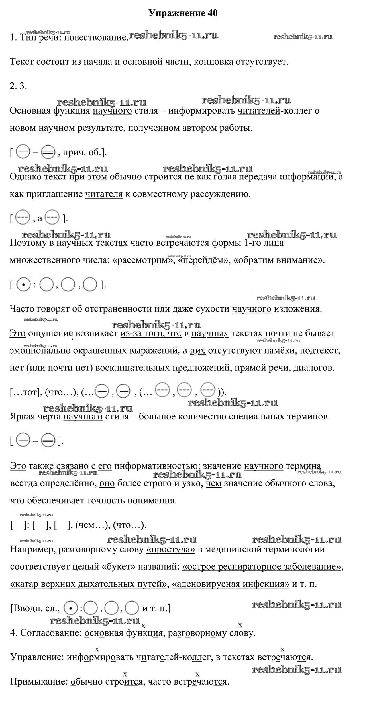 Готовая домашняя работа с ответами по Русскому языку за 10 класс Леонович, Волынец, Долбик, Санкович Учебник Национальный институт образования 2020 ФГОС - Упражнения 40