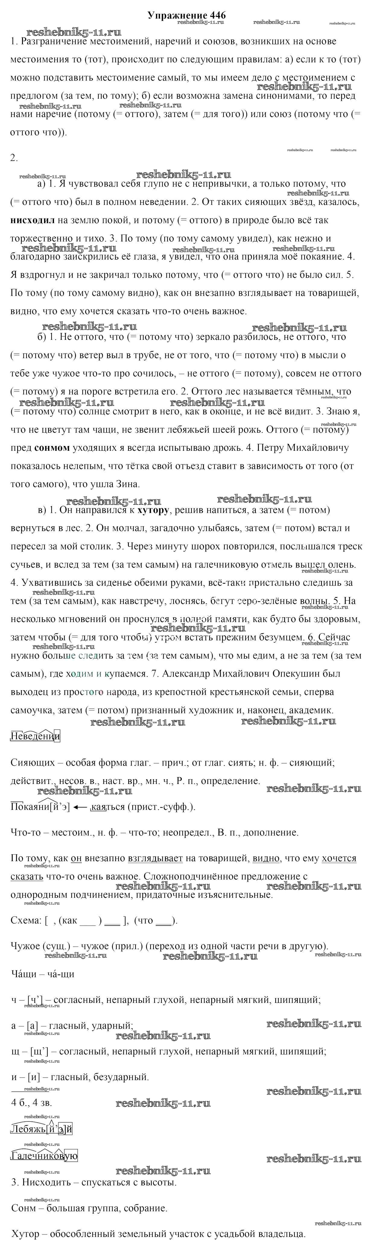 Готовая домашняя работа с ответами по Русскому языку за 10 класс Леонович, Волынец, Долбик, Санкович Учебник Национальный институт образования 2020 ФГОС - Упражнения 446