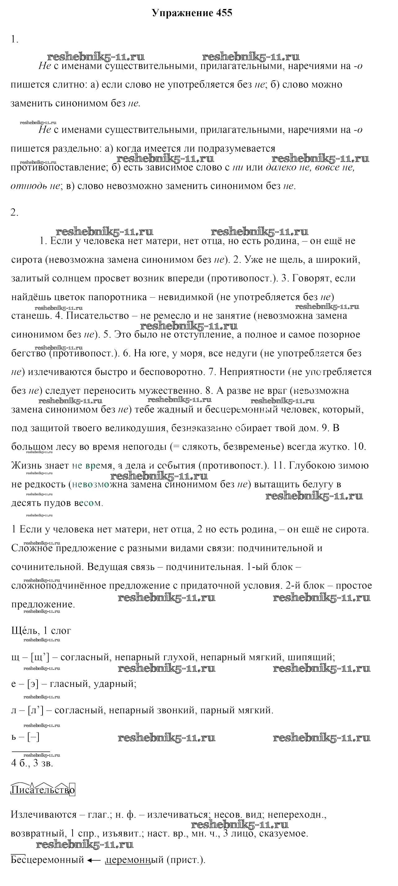 Готовая домашняя работа с ответами по Русскому языку за 10 класс Леонович, Волынец, Долбик, Санкович Учебник Национальный институт образования 2020 ФГОС - Упражнения 455