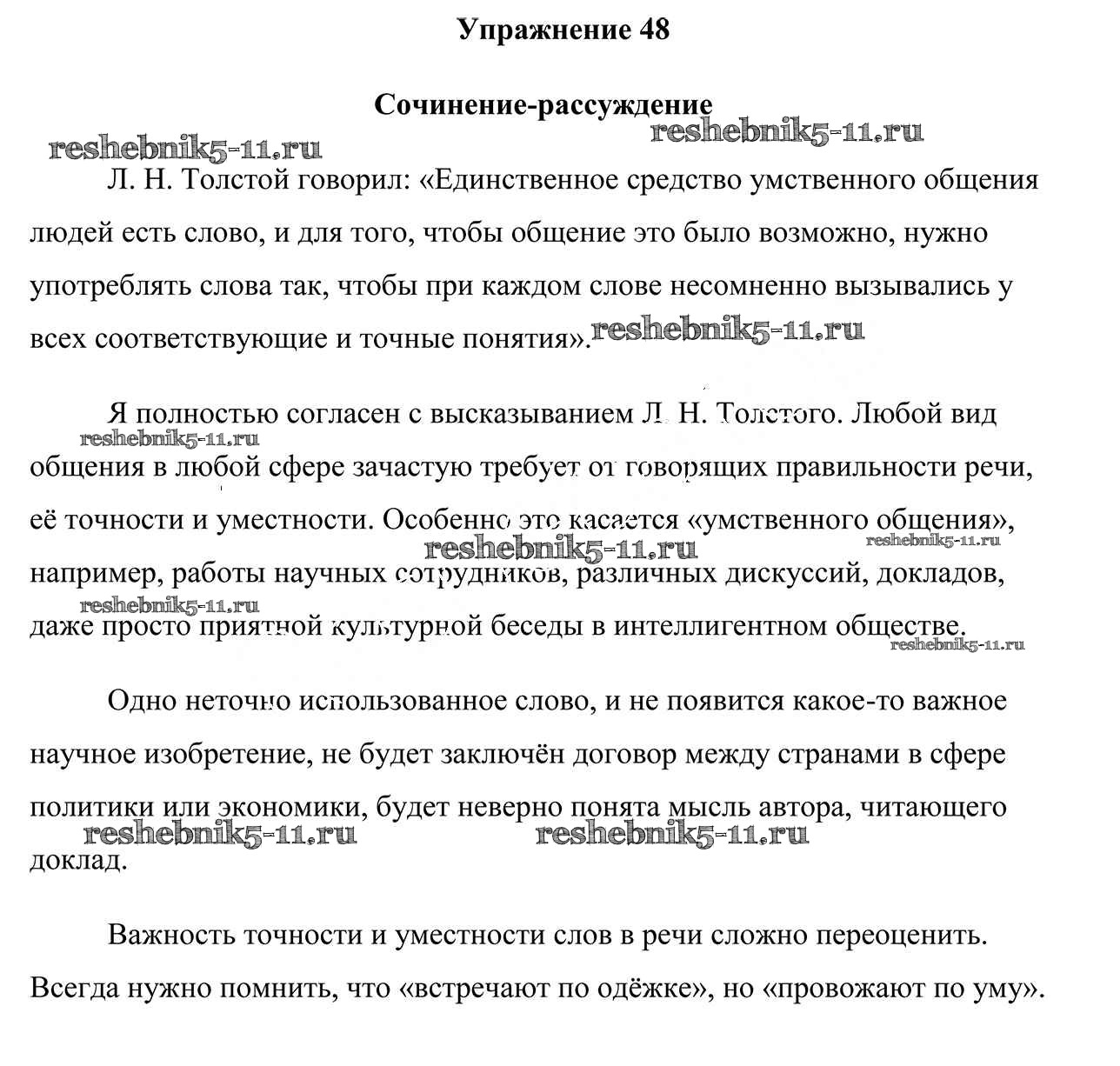 Готовая домашняя работа с ответами по Русскому языку за 10 класс Леонович, Волынец, Долбик, Санкович Учебник Национальный институт образования 2020 ФГОС - Упражнения 48