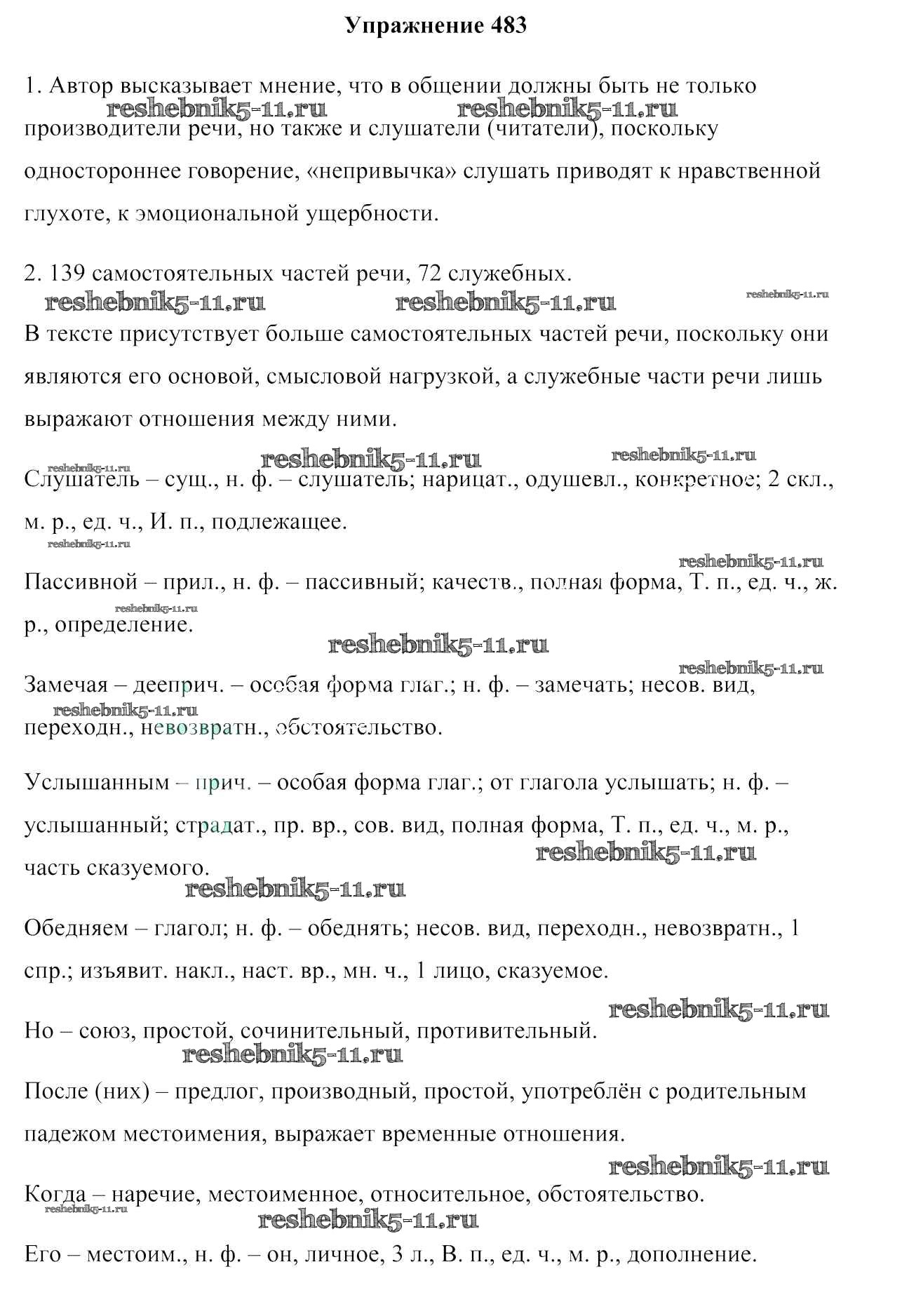 Готовая домашняя работа с ответами по Русскому языку за 10 класс Леонович, Волынец, Долбик, Санкович Учебник Национальный институт образования 2020 ФГОС - Упражнения 483