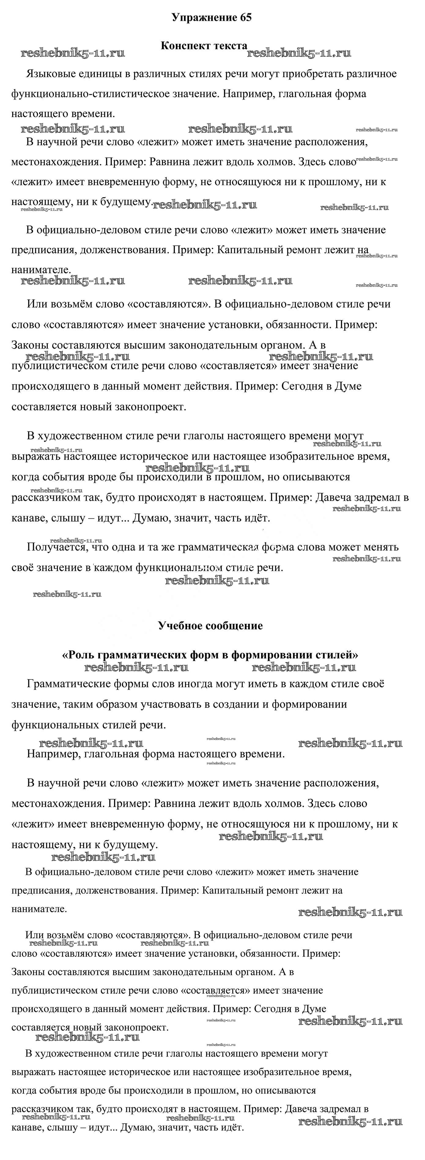 Готовая домашняя работа с ответами по Русскому языку за 10 класс Леонович, Волынец, Долбик, Санкович Учебник Национальный институт образования 2020 ФГОС - Упражнения 65