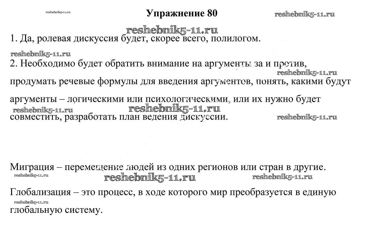 Готовая домашняя работа с ответами по Русскому языку за 10 класс Леонович, Волынец, Долбик, Санкович Учебник Национальный институт образования 2020 ФГОС - Упражнения 80