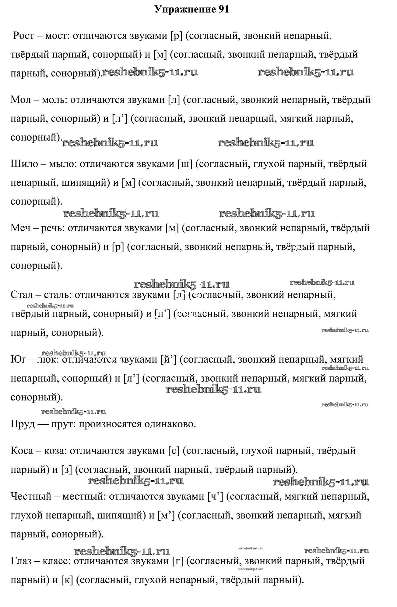 Готовая домашняя работа с ответами по Русскому языку за 10 класс Леонович, Волынец, Долбик, Санкович Учебник Национальный институт образования 2020 ФГОС - Упражнения 91