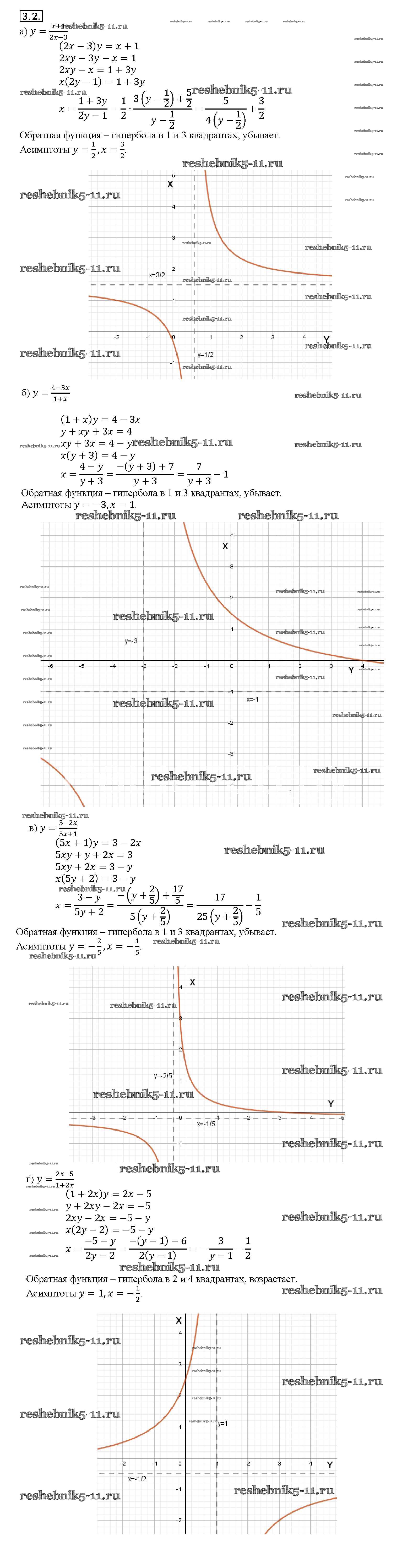 Готовая домашняя работа с ответами по Алгебре за 10, 11 класс Мордкович, Денищева, Корешкова, Мишустина, Семёнов, Тульчинская Задачник Базовый уровень Часть 2 Мнемозина 2015 ФГОС - §3. Обратная функция 3. 2
