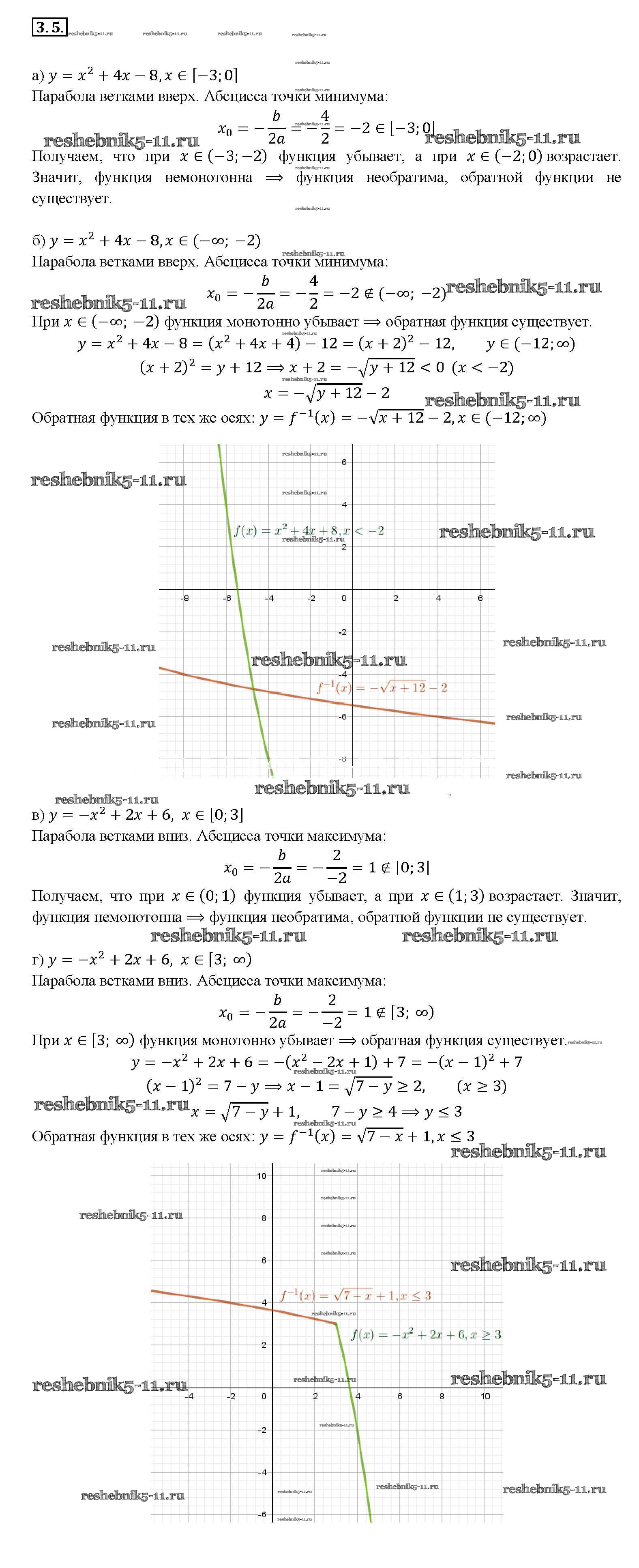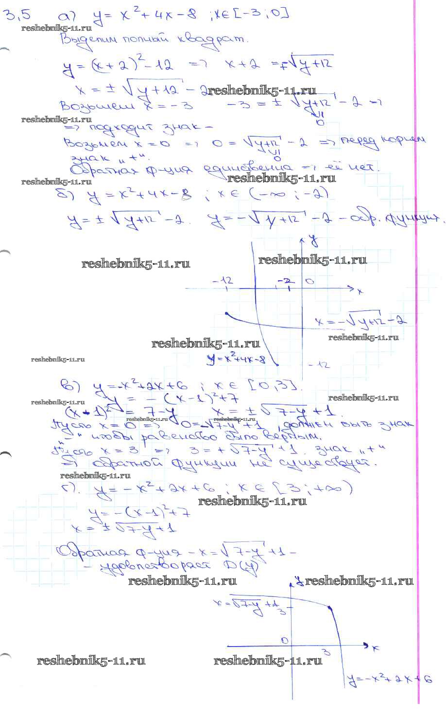 Готовая домашняя работа с ответами по Алгебре за 10, 11 класс Мордкович, Денищева, Корешкова, Мишустина, Семёнов, Тульчинская Задачник Базовый уровень Часть 2 Мнемозина 2015 ФГОС - §3. Обратная функция 3. 5