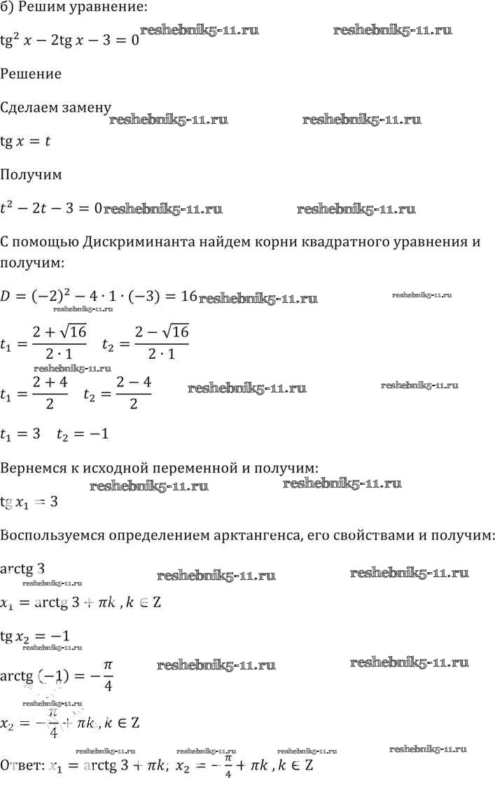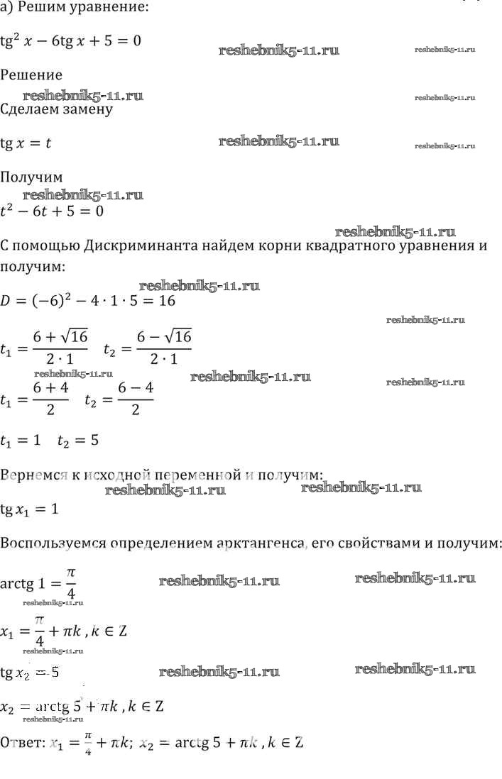 Готовая домашняя работа с ответами по Алгебре за 10, 11 класс Мордкович, Денищева, Корешкова, Мишустина, Семёнов, Тульчинская Задачник Базовый уровень Часть 2 Мнемозина 2015 ФГОС - §17. Арктангенс и арккотангенс 17.11
