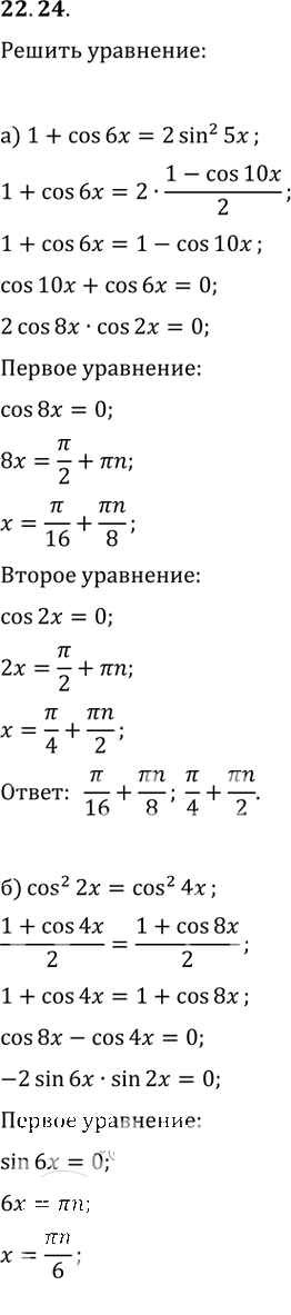 Готовая домашняя работа с ответами по Алгебре за 10, 11 класс Мордкович, Денищева, Корешкова, Мишустина, Семёнов, Тульчинская Задачник Базовый уровень Часть 2 Мнемозина 2015 ФГОС - §22. Преобразование суммы тригонометрических функций в произведения 22.24