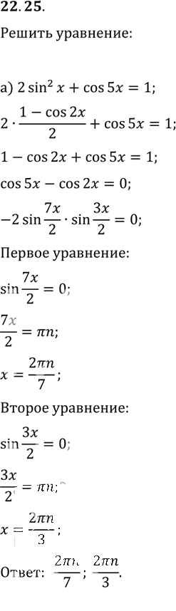 Готовая домашняя работа с ответами по Алгебре за 10, 11 класс Мордкович, Денищева, Корешкова, Мишустина, Семёнов, Тульчинская Задачник Базовый уровень Часть 2 Мнемозина 2015 ФГОС - §22. Преобразование суммы тригонометрических функций в произведения 22.25