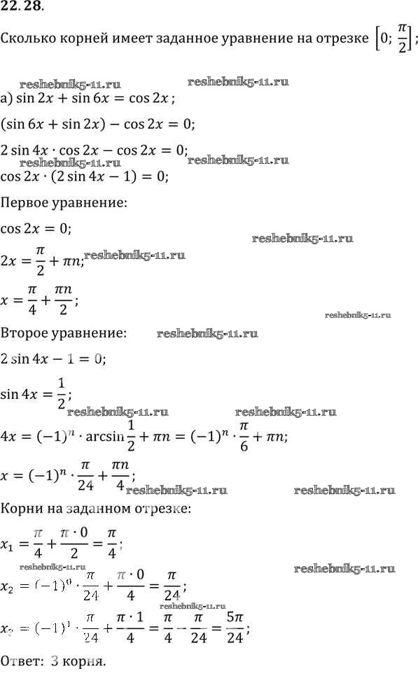 Готовая домашняя работа с ответами по Алгебре за 10, 11 класс Мордкович, Денищева, Корешкова, Мишустина, Семёнов, Тульчинская Задачник Базовый уровень Часть 2 Мнемозина 2015 ФГОС - §22. Преобразование суммы тригонометрических функций в произведения 22.28