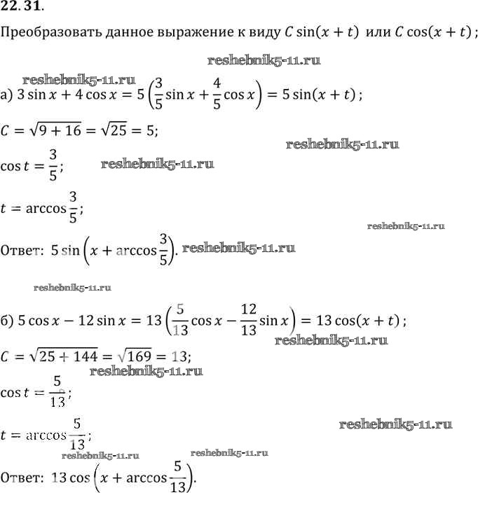 Готовая домашняя работа с ответами по Алгебре за 10, 11 класс Мордкович, Денищева, Корешкова, Мишустина, Семёнов, Тульчинская Задачник Базовый уровень Часть 2 Мнемозина 2015 ФГОС - §22. Преобразование суммы тригонометрических функций в произведения 22.31
