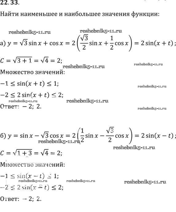 Готовая домашняя работа с ответами по Алгебре за 10, 11 класс Мордкович, Денищева, Корешкова, Мишустина, Семёнов, Тульчинская Задачник Базовый уровень Часть 2 Мнемозина 2015 ФГОС - §22. Преобразование суммы тригонометрических функций в произведения 22.33