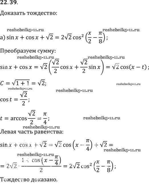 Готовая домашняя работа с ответами по Алгебре за 10, 11 класс Мордкович, Денищева, Корешкова, Мишустина, Семёнов, Тульчинская Задачник Базовый уровень Часть 2 Мнемозина 2015 ФГОС - §22. Преобразование суммы тригонометрических функций в произведения 22.39