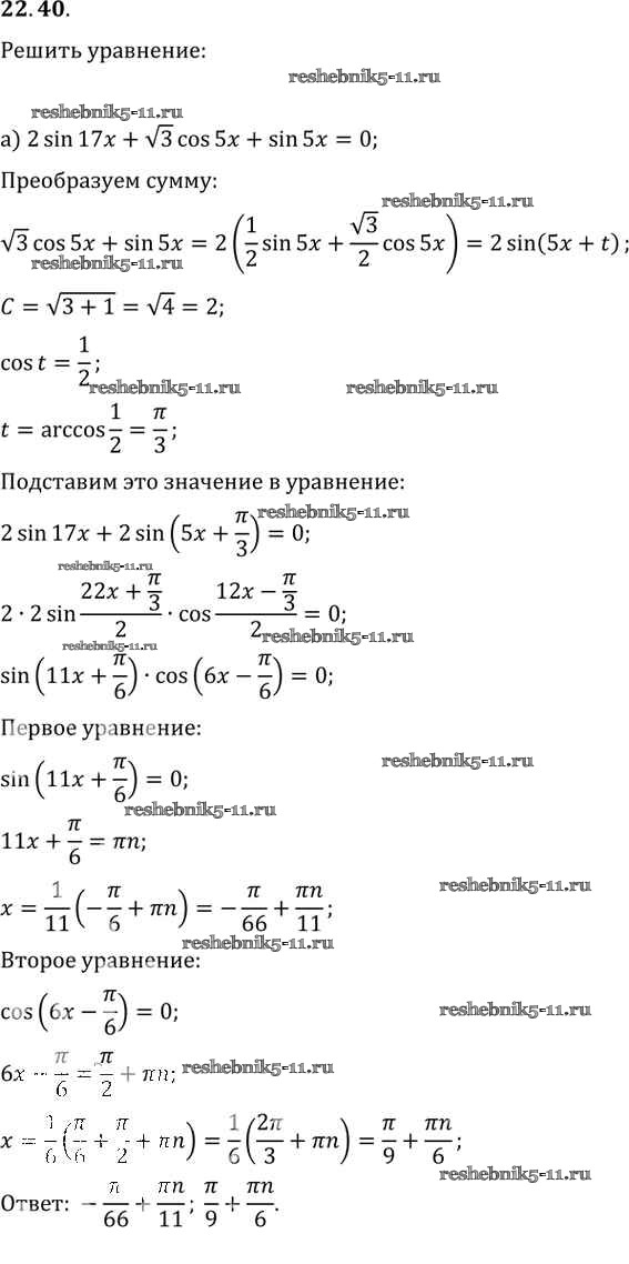 Готовая домашняя работа с ответами по Алгебре за 10, 11 класс Мордкович, Денищева, Корешкова, Мишустина, Семёнов, Тульчинская Задачник Базовый уровень Часть 2 Мнемозина 2015 ФГОС - §22. Преобразование суммы тригонометрических функций в произведения 22.40