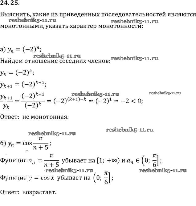 Готовая домашняя работа с ответами по Алгебре за 10, 11 класс Мордкович, Денищева, Корешкова, Мишустина, Семёнов, Тульчинская Задачник Базовый уровень Часть 2 Мнемозина 2015 ФГОС - §24. Предел последовательности 24.25