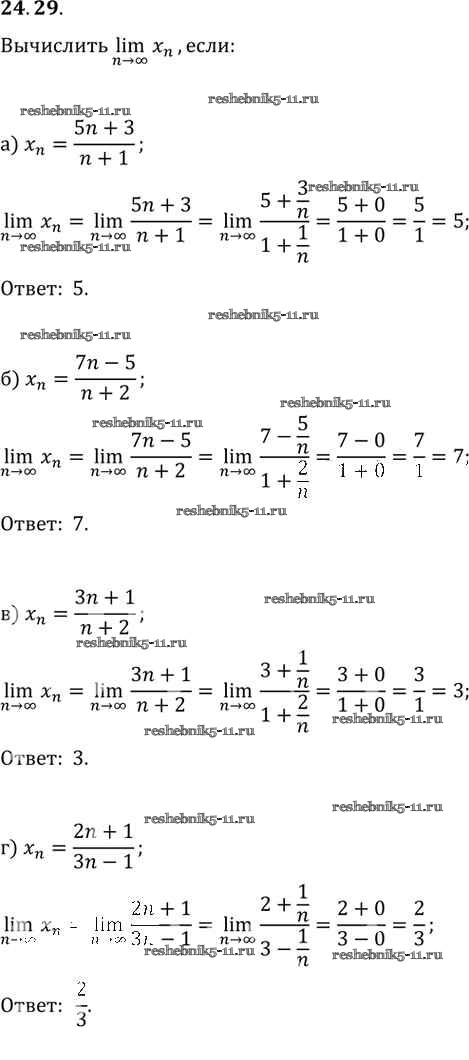 Готовая домашняя работа с ответами по Алгебре за 10, 11 класс Мордкович, Денищева, Корешкова, Мишустина, Семёнов, Тульчинская Задачник Базовый уровень Часть 2 Мнемозина 2015 ФГОС - §24. Предел последовательности 24.29