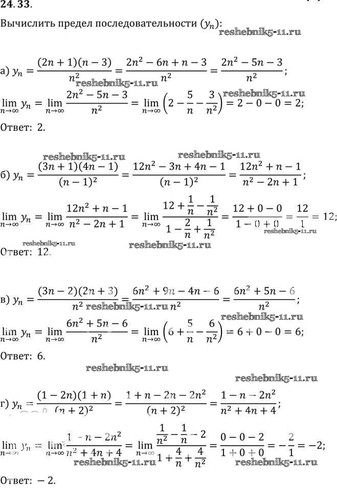 Готовая домашняя работа с ответами по Алгебре за 10, 11 класс Мордкович, Денищева, Корешкова, Мишустина, Семёнов, Тульчинская Задачник Базовый уровень Часть 2 Мнемозина 2015 ФГОС - §24. Предел последовательности 24.33