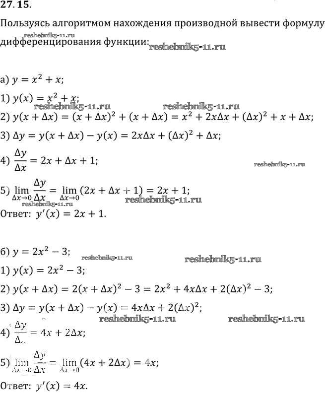 Готовая домашняя работа с ответами по Алгебре за 10, 11 класс Мордкович, Денищева, Корешкова, Мишустина, Семёнов, Тульчинская Задачник Базовый уровень Часть 2 Мнемозина 2015 ФГОС - §27. Определение производной 27. 15