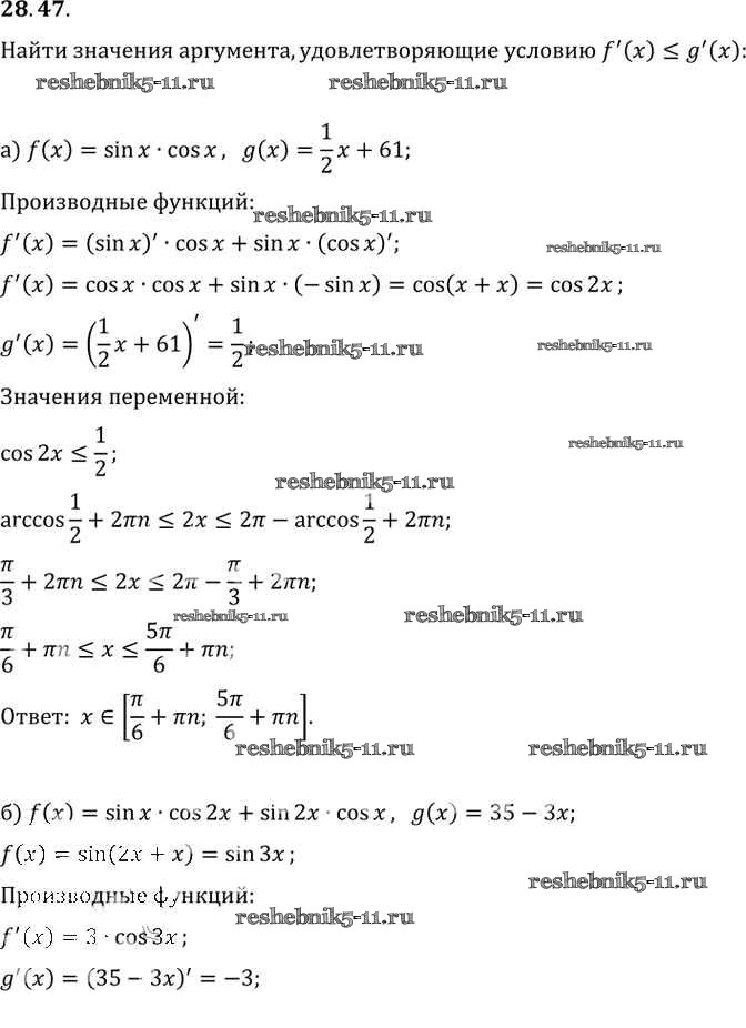 Готовая домашняя работа с ответами по Алгебре за 10, 11 класс Мордкович, Денищева, Корешкова, Мишустина, Семёнов, Тульчинская Задачник Базовый уровень Часть 2 Мнемозина 2015 ФГОС - §28. Вычисление производных 28.47