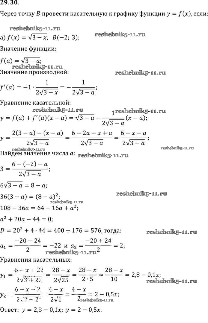 Готовая домашняя работа с ответами по Алгебре за 10, 11 класс Мордкович, Денищева, Корешкова, Мишустина, Семёнов, Тульчинская Задачник Базовый уровень Часть 2 Мнемозина 2015 ФГОС - §29. Уравнение касательной к графику функции 29.30