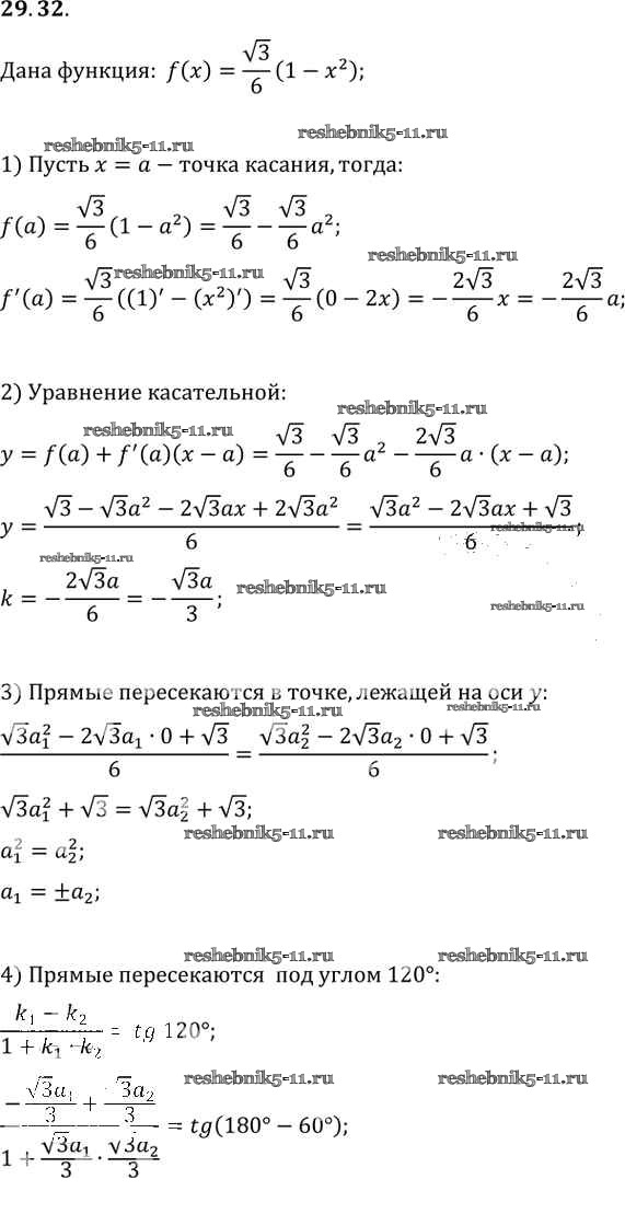 Готовая домашняя работа с ответами по Алгебре за 10, 11 класс Мордкович, Денищева, Корешкова, Мишустина, Семёнов, Тульчинская Задачник Базовый уровень Часть 2 Мнемозина 2015 ФГОС - §29. Уравнение касательной к графику функции 29.32