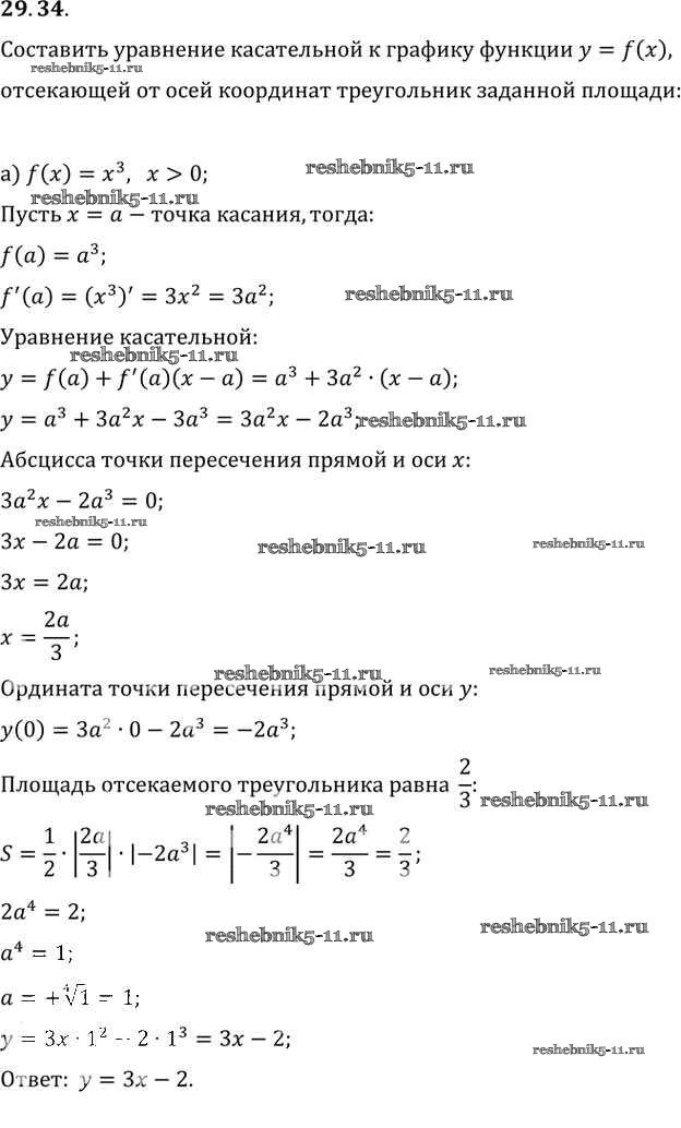 Готовая домашняя работа с ответами по Алгебре за 10, 11 класс Мордкович, Денищева, Корешкова, Мишустина, Семёнов, Тульчинская Задачник Базовый уровень Часть 2 Мнемозина 2015 ФГОС - §29. Уравнение касательной к графику функции 29.34