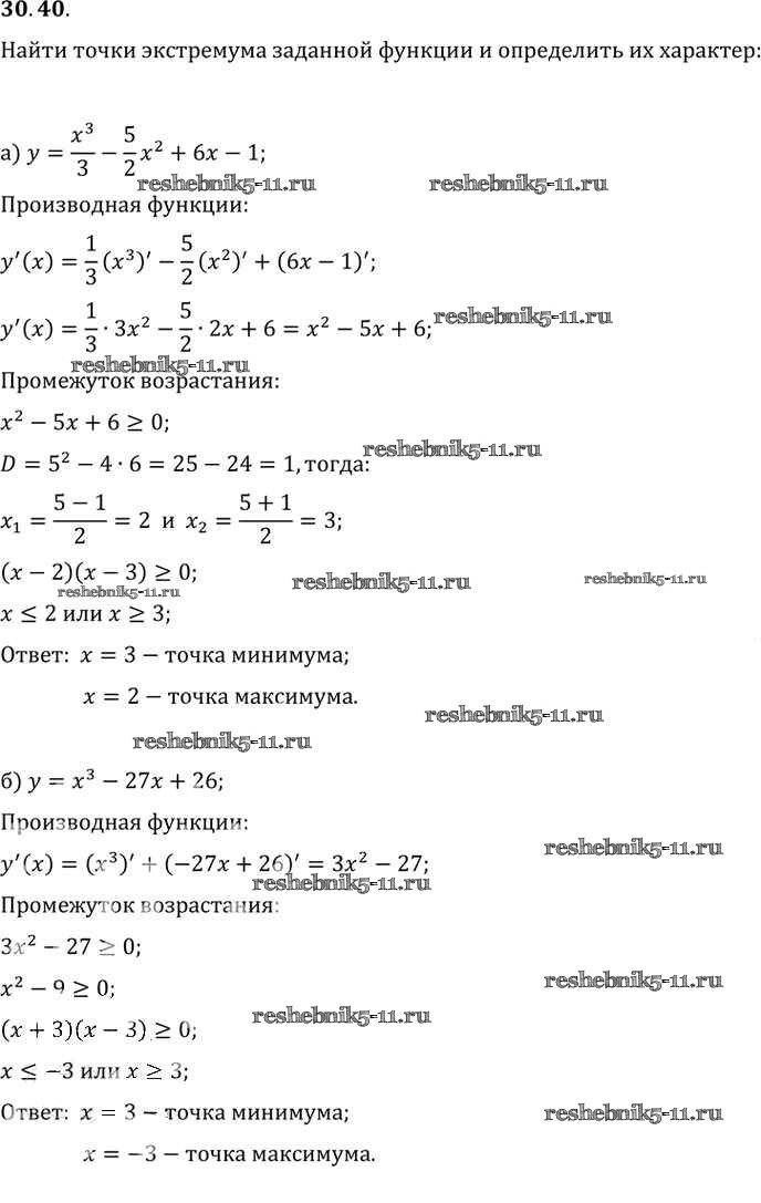 Готовая домашняя работа с ответами по Алгебре за 10, 11 класс Мордкович, Денищева, Корешкова, Мишустина, Семёнов, Тульчинская Задачник Базовый уровень Часть 2 Мнемозина 2015 ФГОС - §30. Применение производной для исследования функций на монотонность и экстремумы 30.40