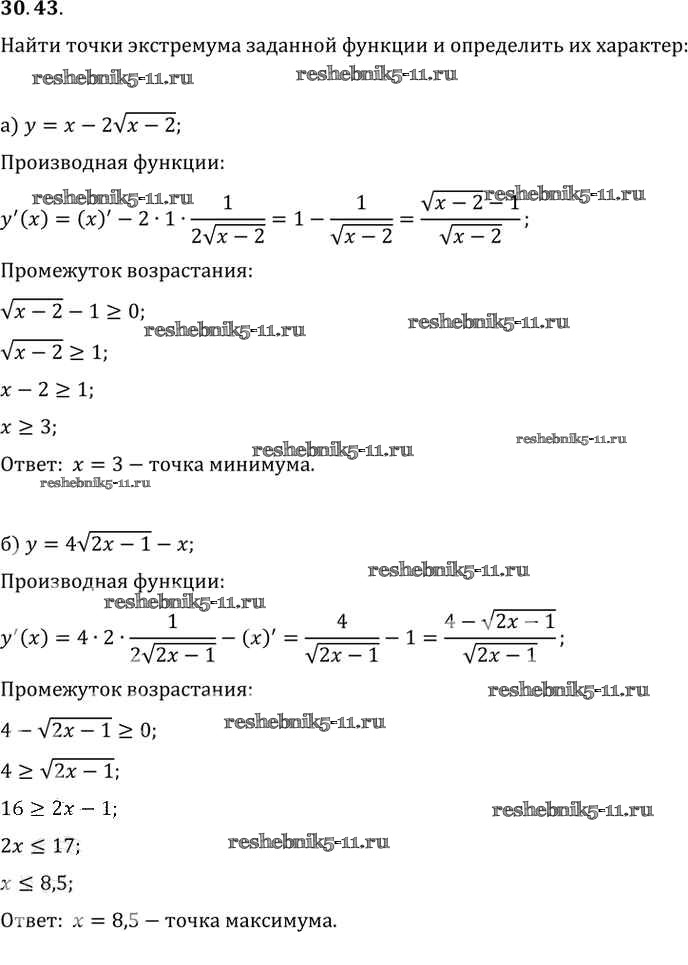 Готовая домашняя работа с ответами по Алгебре за 10, 11 класс Мордкович, Денищева, Корешкова, Мишустина, Семёнов, Тульчинская Задачник Базовый уровень Часть 2 Мнемозина 2015 ФГОС - §30. Применение производной для исследования функций на монотонность и экстремумы 30.43