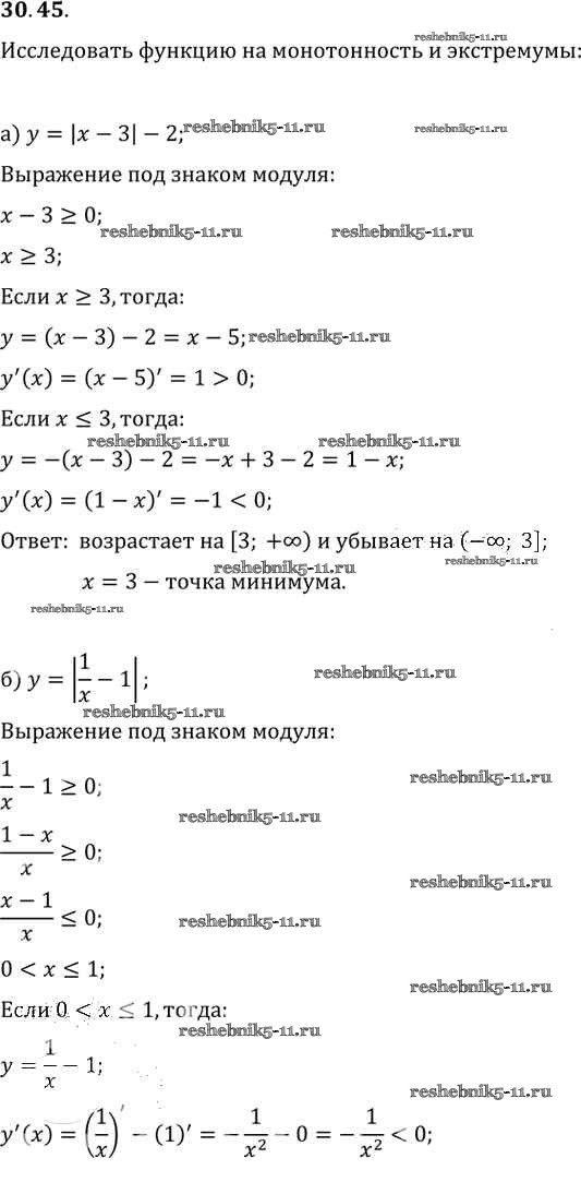 Готовая домашняя работа с ответами по Алгебре за 10, 11 класс Мордкович, Денищева, Корешкова, Мишустина, Семёнов, Тульчинская Задачник Базовый уровень Часть 2 Мнемозина 2015 ФГОС - §30. Применение производной для исследования функций на монотонность и экстремумы 30.45
