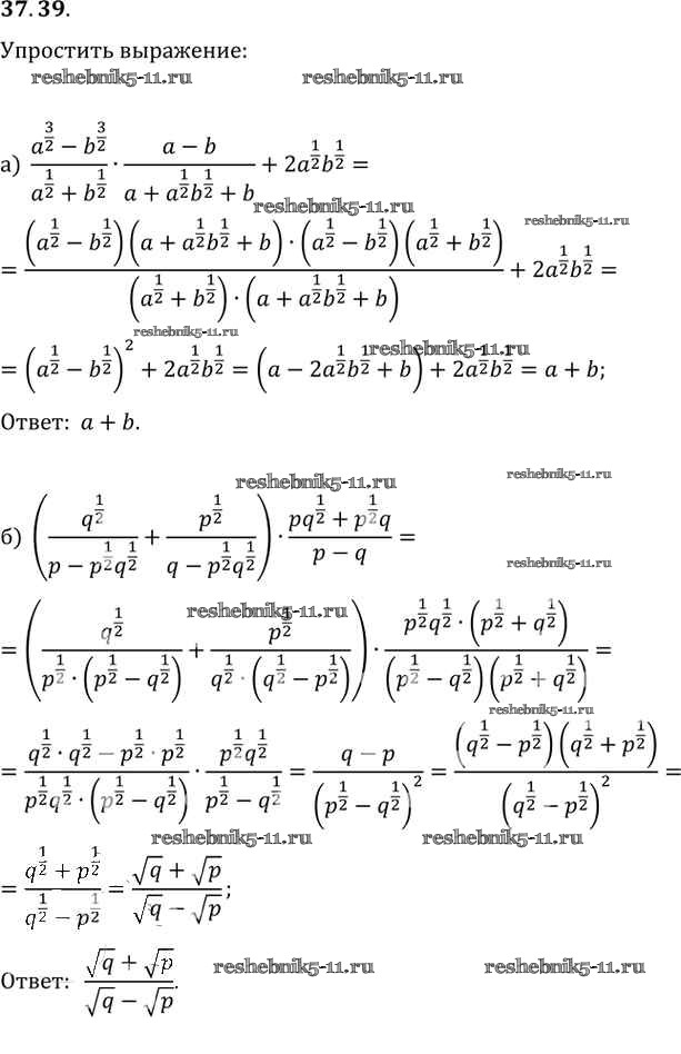 Готовая домашняя работа с ответами по Алгебре за 10, 11 класс Мордкович, Денищева, Корешкова, Мишустина, Семёнов, Тульчинская Задачник Базовый уровень Часть 2 Мнемозина 2015 ФГОС - §37. Обобщение понятия о показателе степени 37.39