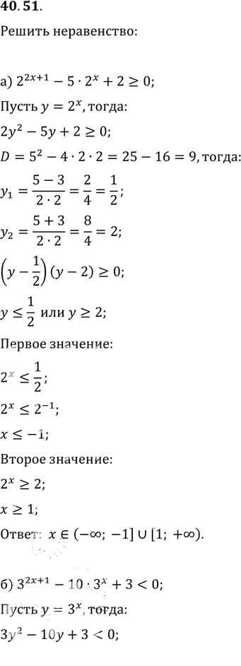 Готовая домашняя работа с ответами по Алгебре за 10, 11 класс Мордкович, Денищева, Корешкова, Мишустина, Семёнов, Тульчинская Задачник Базовый уровень Часть 2 Мнемозина 2015 ФГОС - §40. Показательные уравнения и неравенства 40. 51