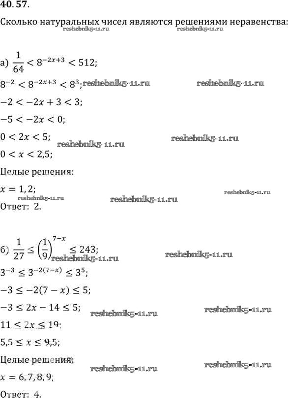 Готовая домашняя работа с ответами по Алгебре за 10, 11 класс Мордкович, Денищева, Корешкова, Мишустина, Семёнов, Тульчинская Задачник Базовый уровень Часть 2 Мнемозина 2015 ФГОС - §40. Показательные уравнения и неравенства 40. 57