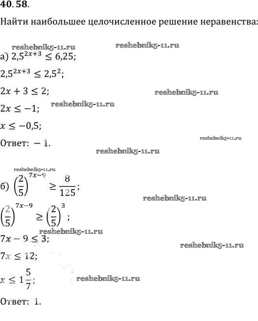 Готовая домашняя работа с ответами по Алгебре за 10, 11 класс Мордкович, Денищева, Корешкова, Мишустина, Семёнов, Тульчинская Задачник Базовый уровень Часть 2 Мнемозина 2015 ФГОС - §40. Показательные уравнения и неравенства 40. 58