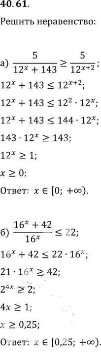 Готовая домашняя работа с ответами по Алгебре за 10, 11 класс Мордкович, Денищева, Корешкова, Мишустина, Семёнов, Тульчинская Задачник Базовый уровень Часть 2 Мнемозина 2015 ФГОС - §40. Показательные уравнения и неравенства 40. 61