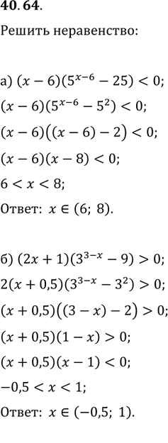 Готовая домашняя работа с ответами по Алгебре за 10, 11 класс Мордкович, Денищева, Корешкова, Мишустина, Семёнов, Тульчинская Задачник Базовый уровень Часть 2 Мнемозина 2015 ФГОС - §40. Показательные уравнения и неравенства 40. 64