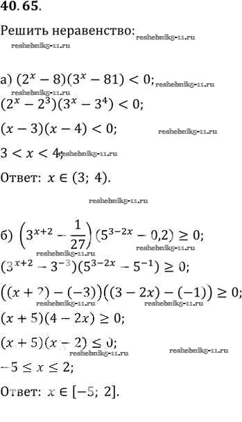 Готовая домашняя работа с ответами по Алгебре за 10, 11 класс Мордкович, Денищева, Корешкова, Мишустина, Семёнов, Тульчинская Задачник Базовый уровень Часть 2 Мнемозина 2015 ФГОС - §40. Показательные уравнения и неравенства 40. 65