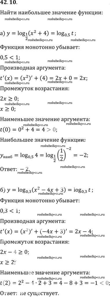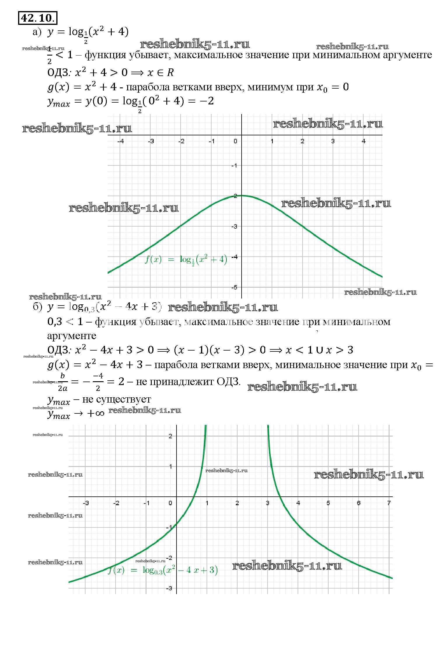 Готовая домашняя работа с ответами по Алгебре за 10, 11 класс Мордкович, Денищева, Корешкова, Мишустина, Семёнов, Тульчинская Задачник Базовый уровень Часть 2 Мнемозина 2015 ФГОС - §42. Функция y = loga x, ее свойства и график 42. 10