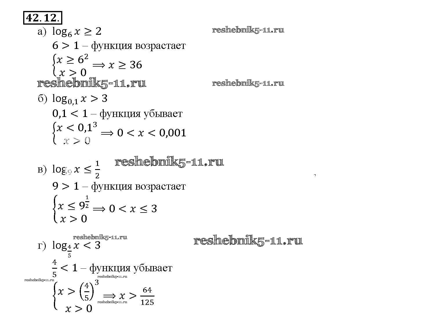 Готовая домашняя работа с ответами по Алгебре за 10, 11 класс Мордкович, Денищева, Корешкова, Мишустина, Семёнов, Тульчинская Задачник Базовый уровень Часть 2 Мнемозина 2015 ФГОС - §42. Функция y = loga x, ее свойства и график 42. 12