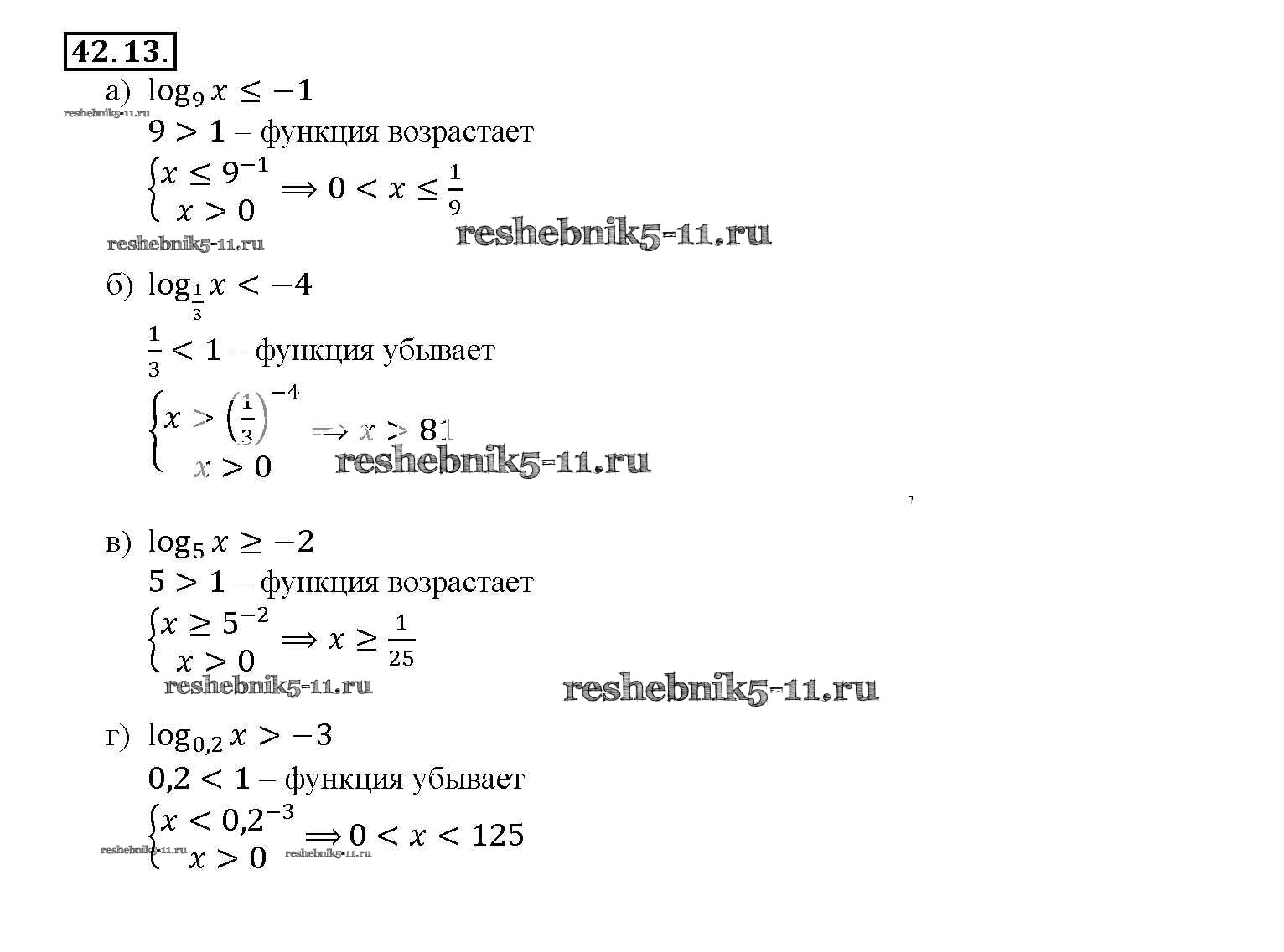 Готовая домашняя работа с ответами по Алгебре за 10, 11 класс Мордкович, Денищева, Корешкова, Мишустина, Семёнов, Тульчинская Задачник Базовый уровень Часть 2 Мнемозина 2015 ФГОС - §42. Функция y = loga x, ее свойства и график 42. 13